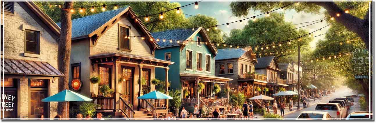 Il Quartiere di Rainey Street è una delle zone più alla moda di Austin, rinomata per la sua vita notturna e la sua atmosfera unica. Questo quartiere storico è stato trasformato negli ultimi anni, diventando un punto di riferimento per bar, ristoranti e locali alla moda.